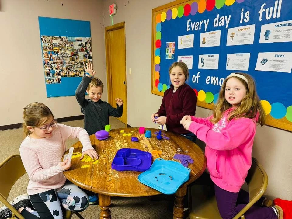 Kids are welcome to join in! This is our ministry to kids on Wednesday afternoons. We have a ton of fun stuff going on here. We get to learn about the life of Jesus and the Bible while often digging into some games and arts and crafts.